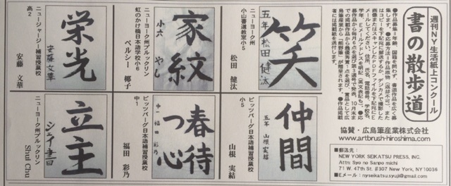 当社が協賛しているNYの「週刊NY生活」の紙上書道コンテスト。2月の優秀作品発表。