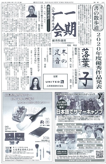 「週刊ニューヨーク生活」書道コンテスト 2020年度優秀作品発表