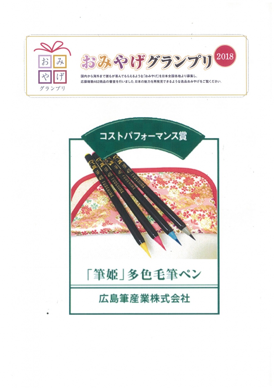 「おみやげグランプリ2018」で当社のカラー筆ペン「筆姫」が入賞しました!