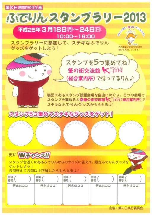 筆の日を含む前後1週間を筆の日週間として、様々な作品展示やギャラリーの開放やメイクコーナー、散策スタンプラリーなどの行事が行われます。ぜひ春の暖かな風と筆の歴史と今に触れに来られてはいかがですか?、弊社でも昔ながらの道具類や筆ができるまでの展示や筆の販売をしております。皆様のご来場お待ちしています!
