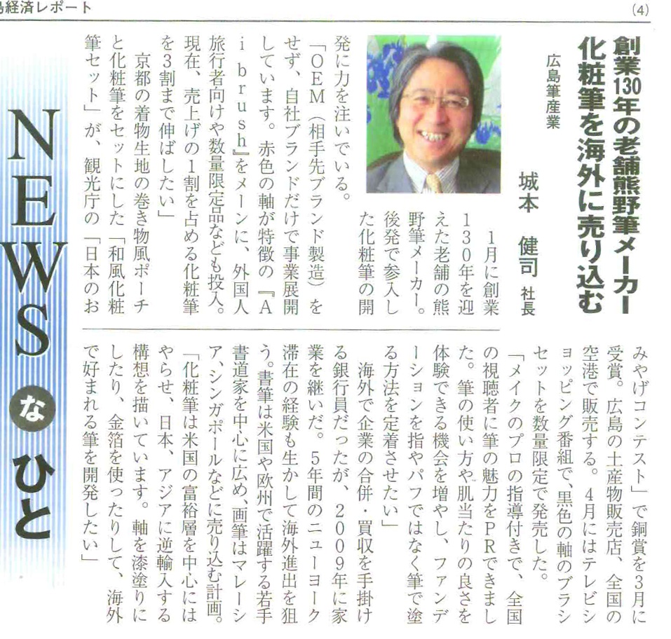 2011年4月19日 火曜日 筆 ショップチャンネルで販売されました。 24時間365日生放送でお馴染みのショップチャンネルで弊社の化粧筆(ファンデーションブラシ&パウダーブラシ)が販売されました。 メイクアップアーティストの樋口由紀子さんのメイク実演もおりまぜた内容で、番組終了予定5分前には完売という大反響の中で販売させて頂くことが出来ました。御買い上げ頂きました皆様本当にありがとうございました。 これからも皆様に喜んでいただける商品を提供して参りたいと思います。