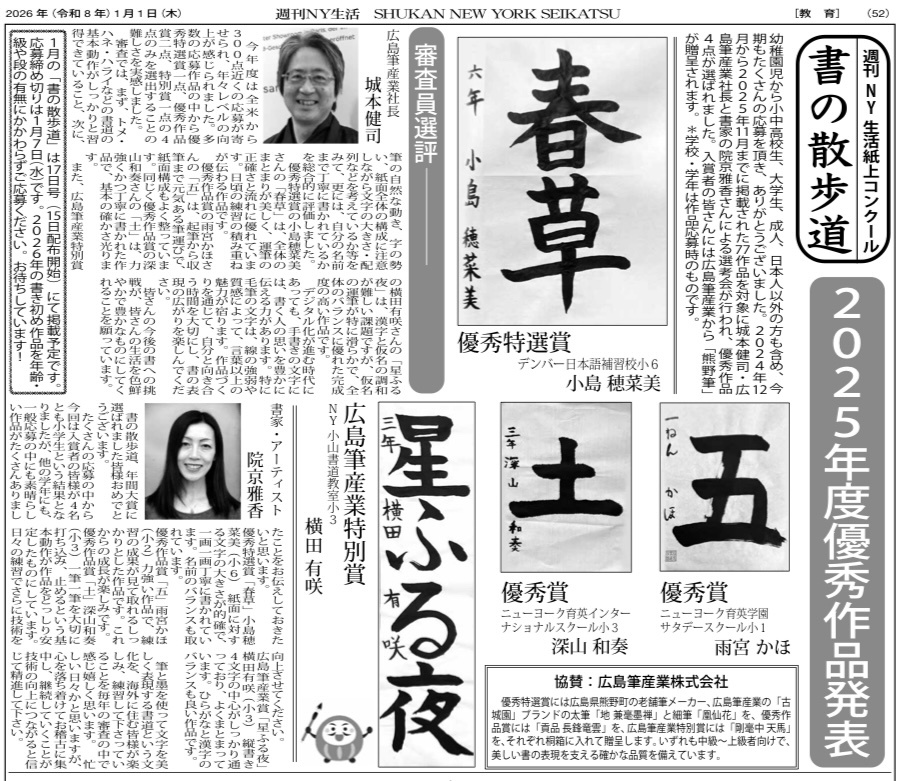 We selected the Best Shodo Performance Awards for the Year of 2025 at Shukan New York