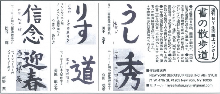 We selected the Best Shodo Performance Awards for the Year of 2020 at Shukan New York Seikatsu where we have sponsored the shodo contest.