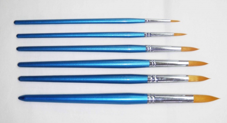 水彩画用筆に用いる軟毛の材質には、セーブル(イタチ科の動物)、リス、馬、狸、羊などの獣毛と、ナイロン、PBTなどの人工毛があります。特にセーブル毛の中でも、コリンスキーと呼ばれるシベリアから中国東北部に生息するイタチ科の動物の毛は、毛の形状が紡錘形をしていて、柔軟で穂先のまとまりがよく、絵具の含みが優れていること等から、最高級の画筆になります。逆に、安価な画筆として、ナイロンやPBTなどの人工毛を穂先に利用した画筆があります。人工毛の表面に凹凸などの特殊加工を施したものやウェーブをつけたものもあり、さらには獣毛を混合するなどして、より獣毛の筆に近い画筆もあります。また、強めの弾力を利用して描く際は、硬毛である豚毛の筆などが最適です。