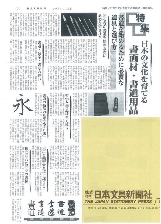 「日本文具新聞 2020年11月号」の「日本の文化を育てる書画材・書道用品」の特集で書道・習字・書写の違い等が丁寧に説明されていました。