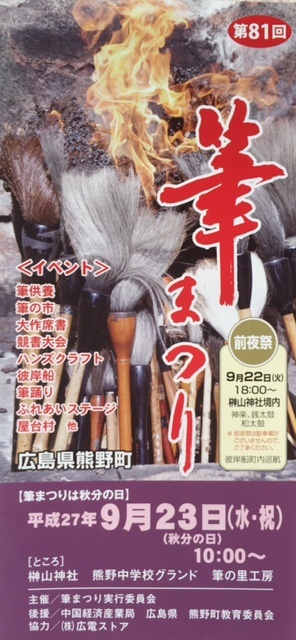 今年も秋のお彼岸9月23日(水・祝日)に行われる熊野町の「筆まつり」に出店致します。