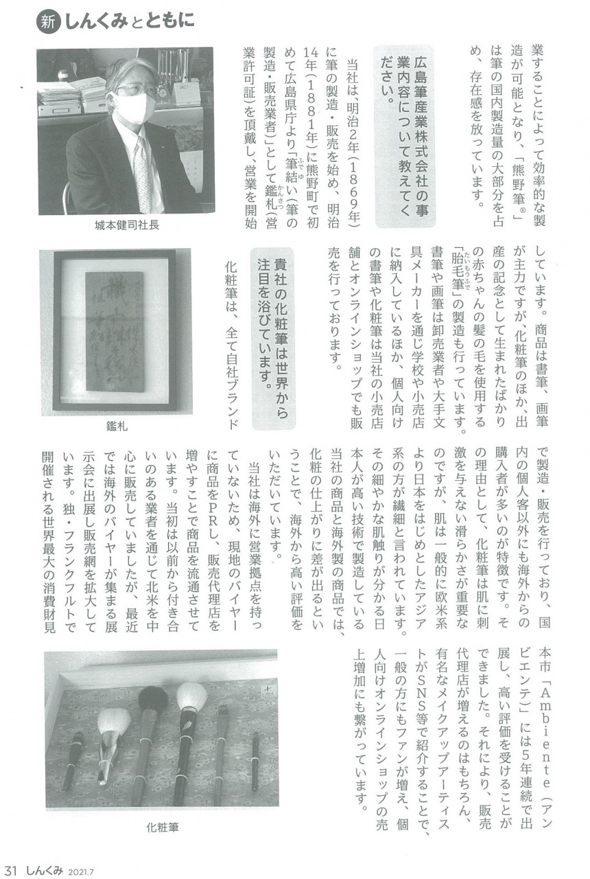 全国の信用組合の役職員のための月間情報誌「しんくみ」7月号で当社が紹介されました!