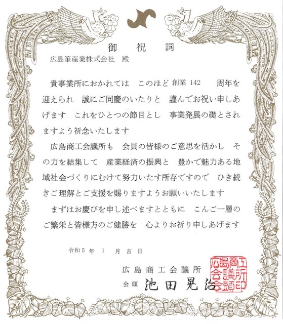 創業からこれまで事業を続けてこられたのは、ご愛顧いただいたお客さま、お取引さま、従業員の皆さん、熊野筆に携わる地域の皆さまのおかげによるものと感謝しております。
