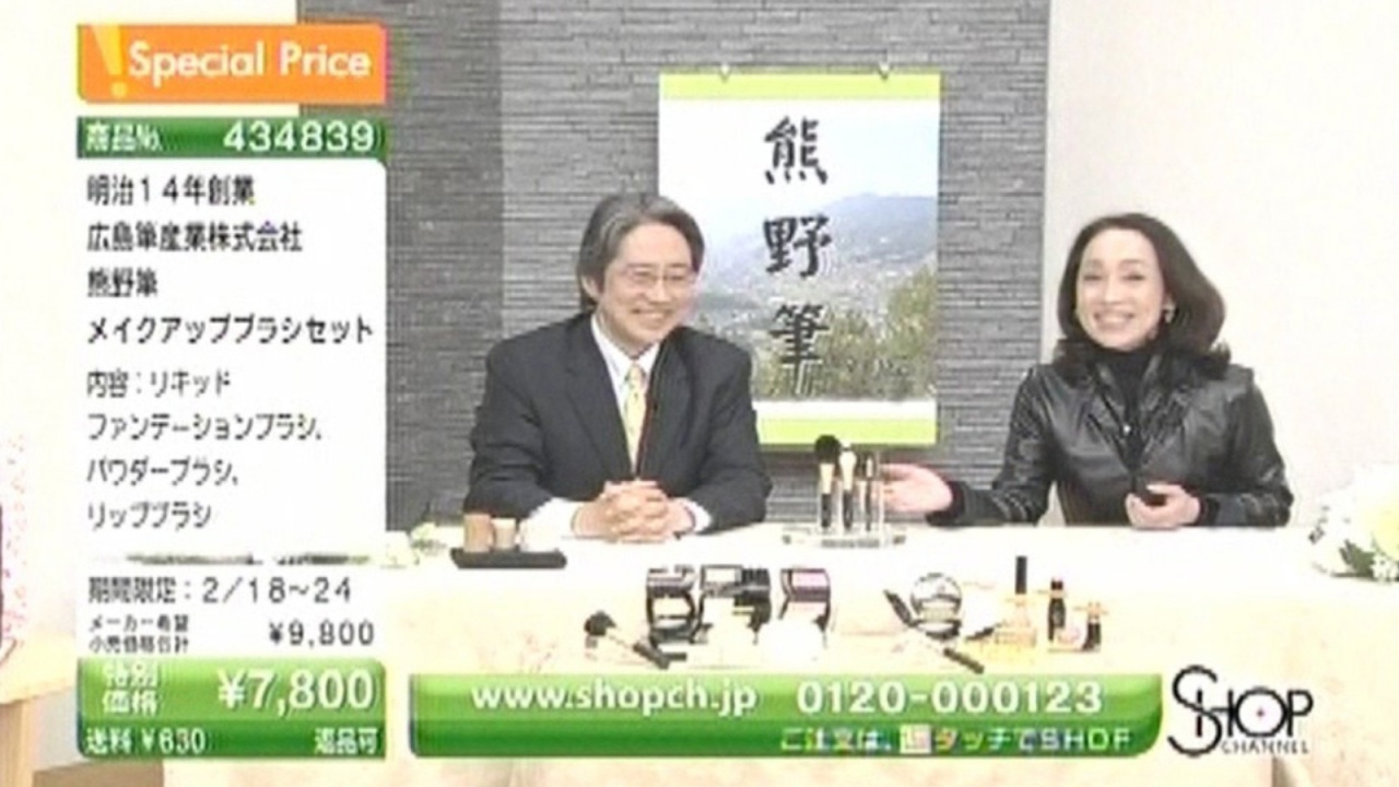2013年2月21日 木曜日 広島店「筆匠古城園」 ショップチャンネルにて販売です! 24時間生放送のショップチャンネルにおいて、弊社のベースメイクセットが2月18日22時から再度販売されました。ご好評を頂いておりますお得なパウダー・リキッドファンデーション・リップブラシもついての限定販売です!2月24日14時からも再度生放送で販売されます。ぜひ新春、新しい季節をこのセットでお迎え下さい!(弊社社長が番組にて直接ご紹介させて頂きます。画像は2月18日放映時)