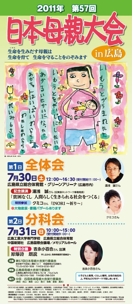2011年7月19日 火曜日 広島店「筆匠古城園」 日本母親大会出店のお知らせ 第57回日本母親大会が広島にて7/30(土)7/31(日)、広島県立総合体育館・グリーンアリーナにて開催され、その期間中に弊社広島店もブースを設け出店いたします。 どうぞお出かけの際には覗いてみてください。