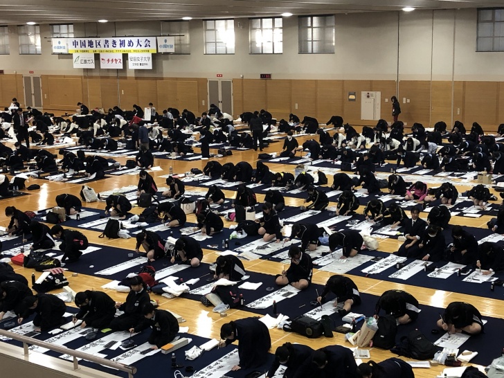 2019年1月14日 月曜日 広島店「筆匠古城園」 第25回中国地区書き初め大会 1月13日に第25回中国地区書き初め大会が広島県立総合体育館武道場にて行われました。 広島、山口両県の小中高生約2000名が参加され、新年の思いを筆に込められました。 児童・生徒のみなさんの真剣に書き初めをしておられる姿はとても美しいです。 わが社の広島店「筆匠古城園」もこの書き初め大会の運営に協力させて頂きました。