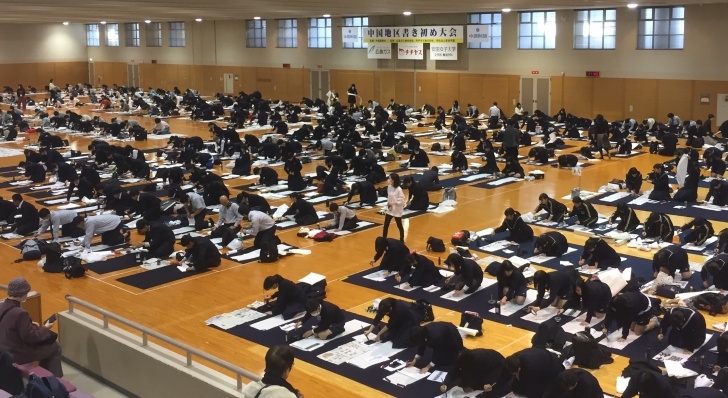 2018年1月10日 水曜日 広島店「筆匠古城園」 第24回中国地区書き初め大会 1月7日に第24回中国地区書き初め大会が広島県立総合体育館武道場にて行われました。 広島、山口両県の小中高生2018名が参加され、新年の思いを筆に込められました。 多くの児童・生徒が一堂に会し書き初めをしておられる光景は圧巻です。 わが社の広島店「筆匠古城園」も協力させて頂きました。