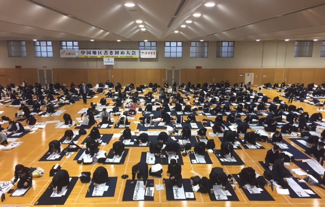 第23回中国地区「書き初め大会」が平成29年1月8日(日)に広島県立総合体育館武道場にて行われました。2,000名以上の小学生、中学生、高校生が参加して盛大に行われました。