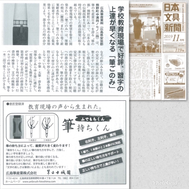 「日本文具新聞 11月号」で当社の書道筆の「筆ごのみ」と「筆持ちくん」(こちらは広告です)が紹介されました!